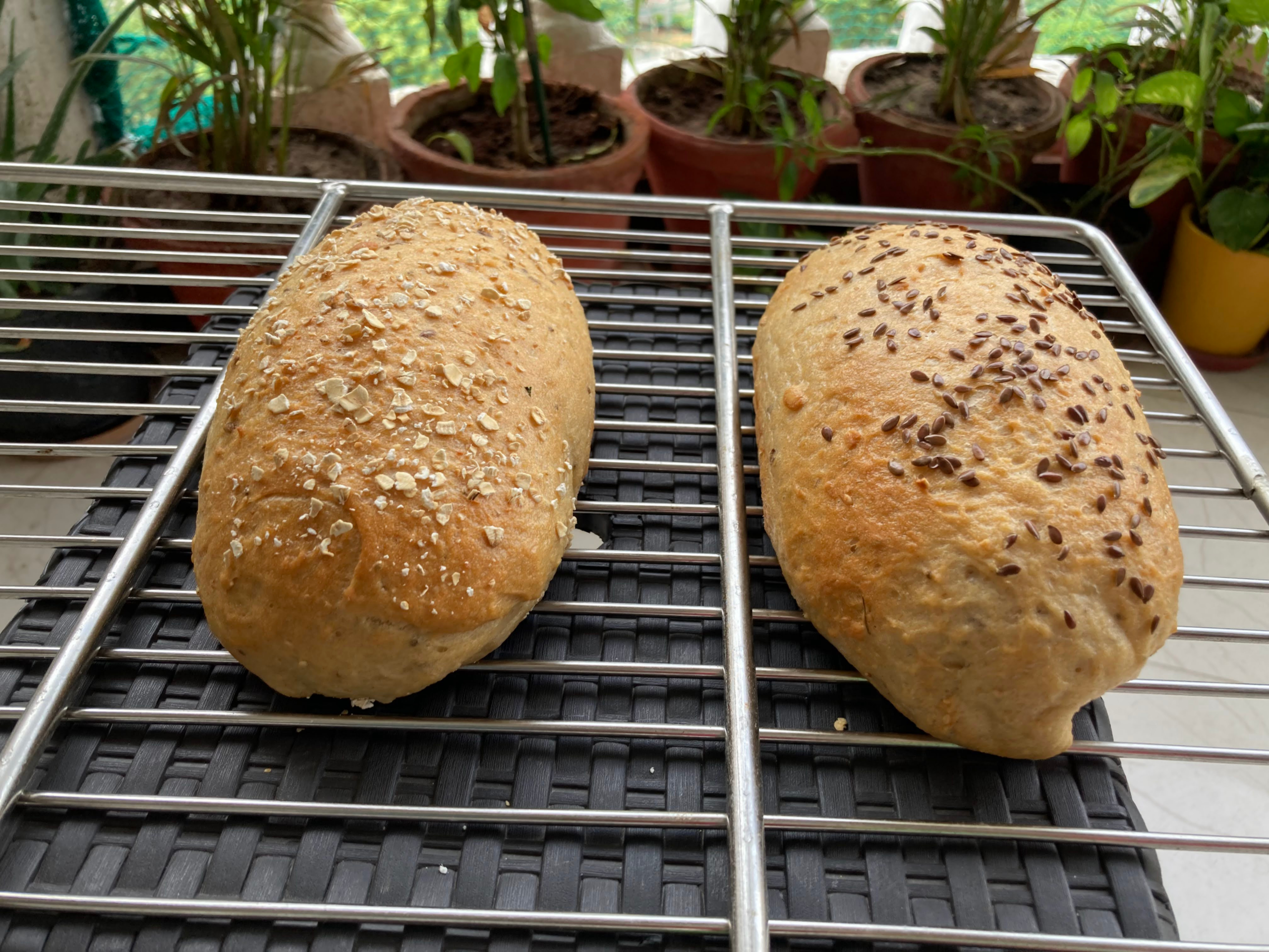 This is a particular favorite of ours. It goes really well with everything –it is a wonderful replacement for pav/normal bread & excellent with soups in winters. Like I said, the extra ingredients (psyllium husk or isabgol, chia and flax egg etc.) help the dough rise. Here I am trying with four different flours, but there really is no end to the combinations – add as little or as much as you want.